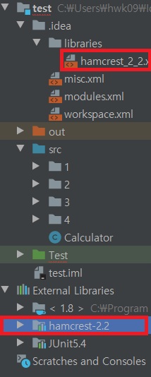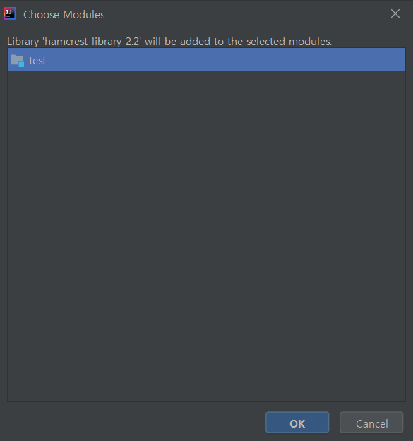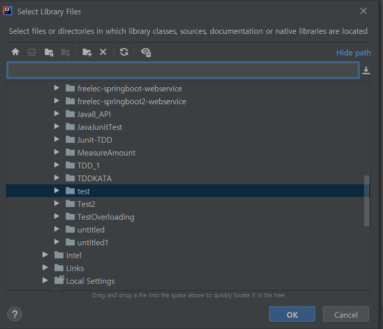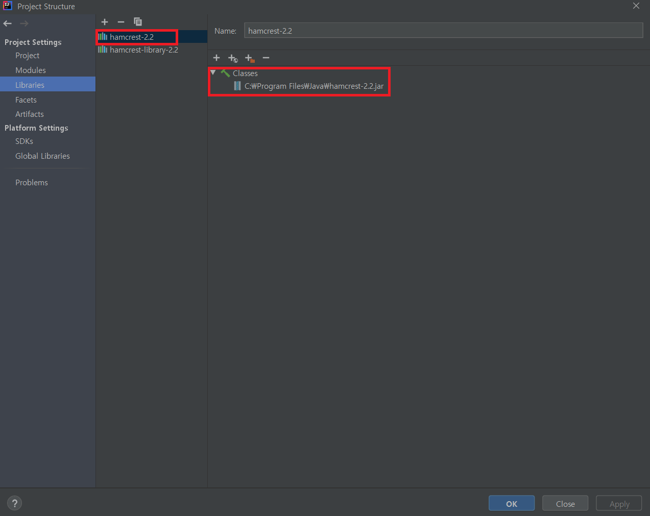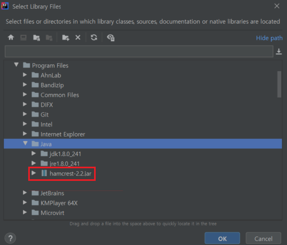 위와 같은 식으로 자동으로 경로가 이동된다. 여기서 hamcrest-2.2.jar를 선택하고 OK를 눌러준다.
