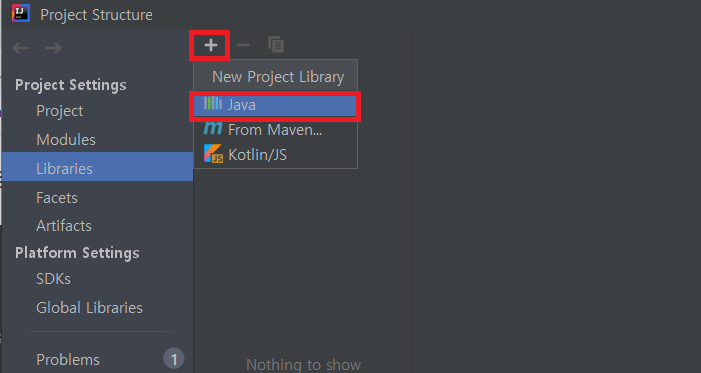 그렇다면 이제 +버튼을 눌러 Java를 선택해보자.