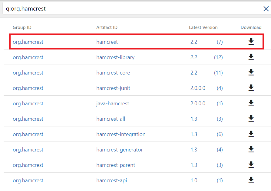 외부 라이브러리 Hamcrest를 추가해 사용이 가능하다. 우선 라이브러리 Jar파일을 다운로드한다.