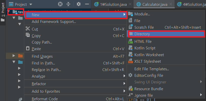 테스트받을 클래스의 생성이 끝났다면, 이제 테스트할 새로운 디렉터리를 생성해준다.