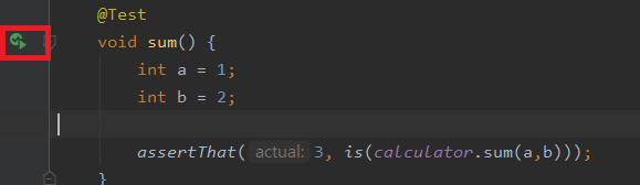 테스트의 실행은 저 버튼을 클릭 후, Run 'sum'을 선택하여 실행하면 된다.